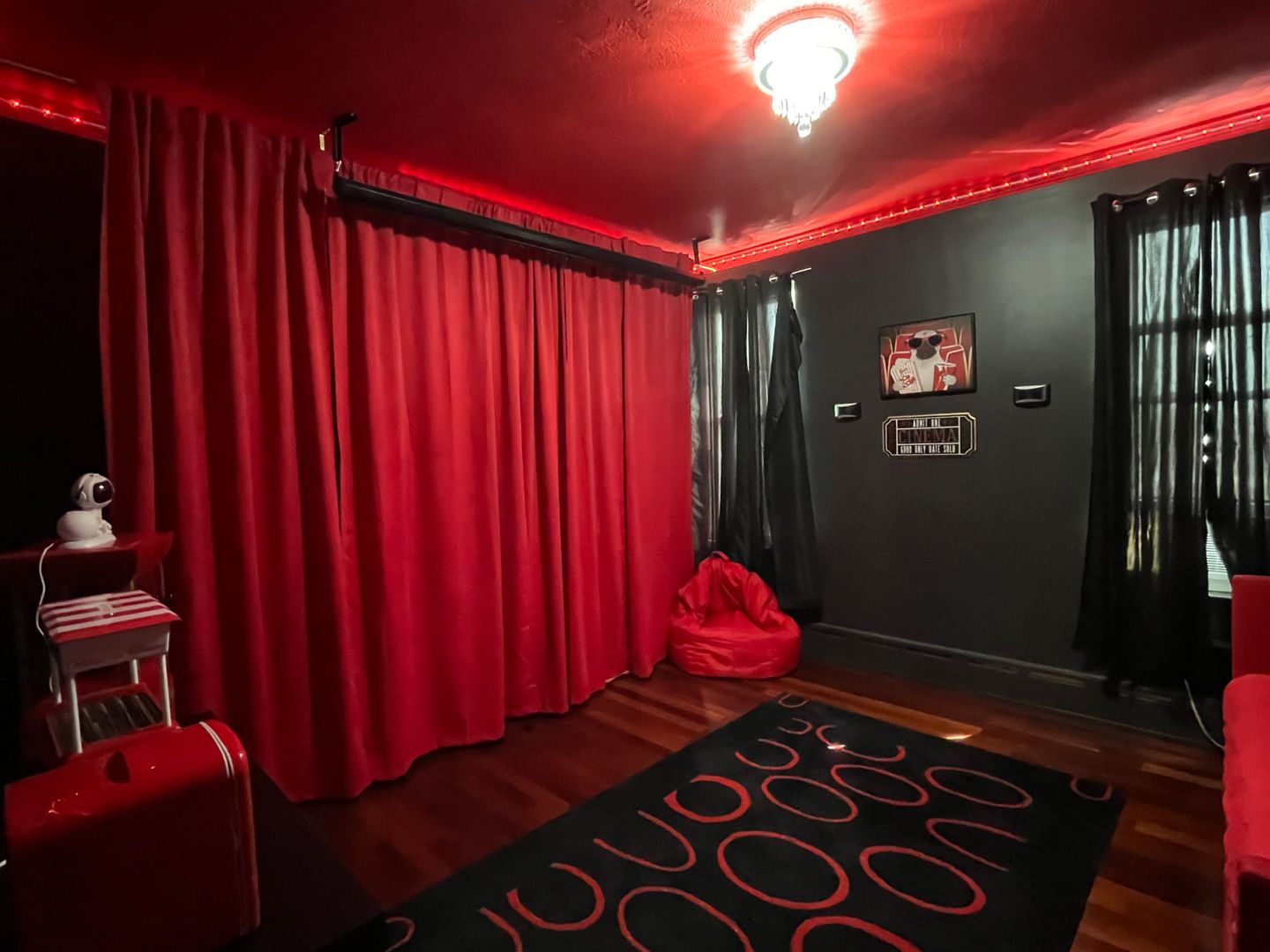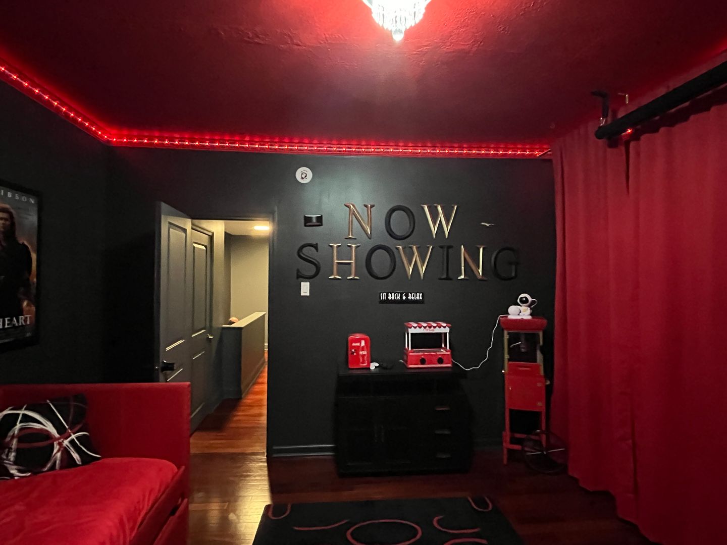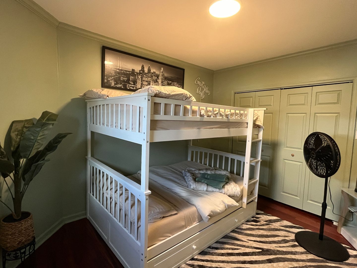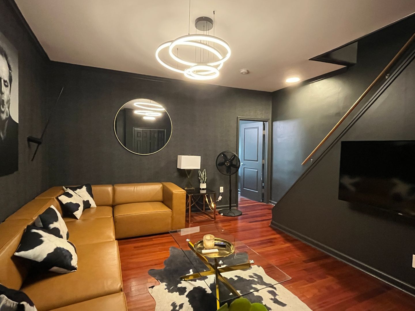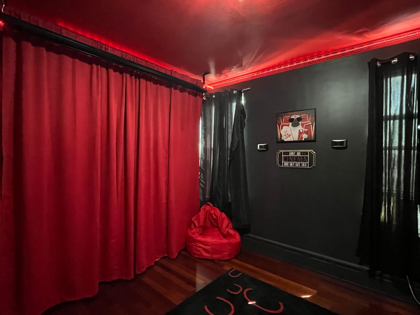 This 3-bedroom, 1 bath gem offers an unbeatable city retreat. With 7 memory foam beds, there's ample room for everyone to Lounge comfortably. Movie enthusiasts will adore the 3rd story movie theater, perfect for cozy nights in. The main living area with its open layout is ideal for relaxation. The Kitchen is very large for your culinary delight, complete with a sprawling Coffee Bar.