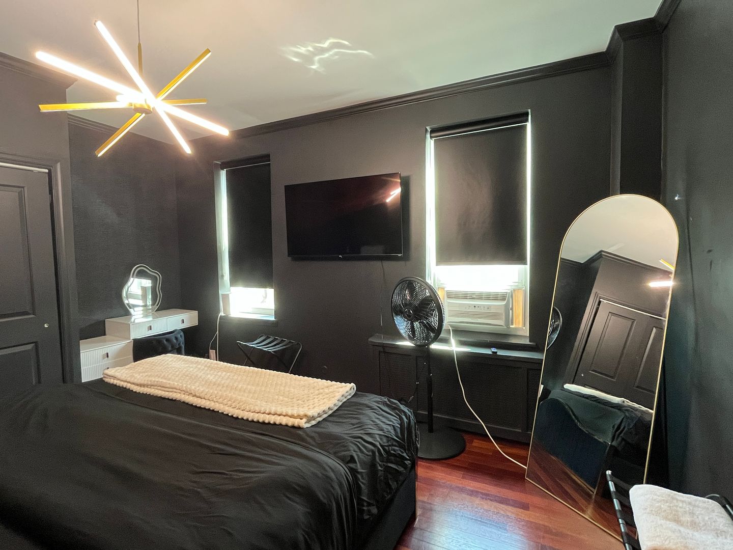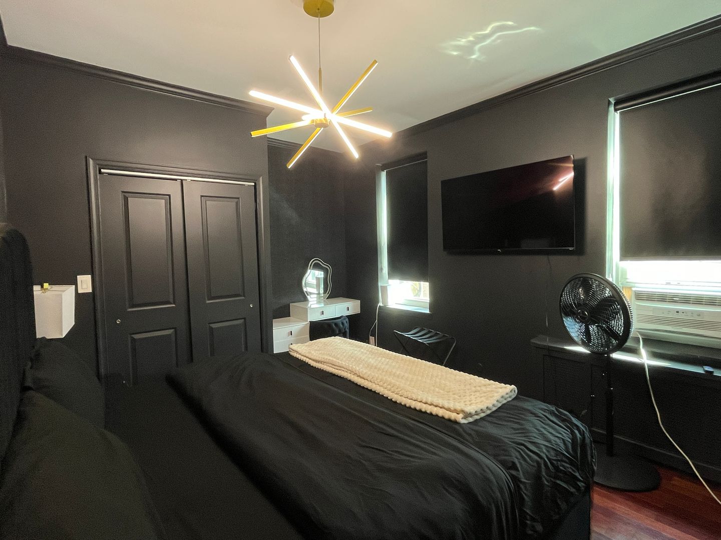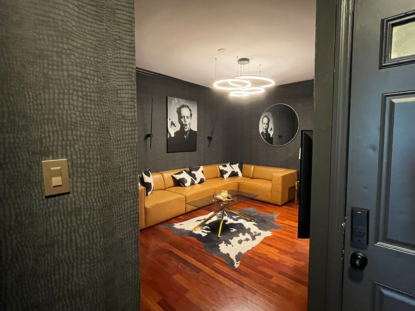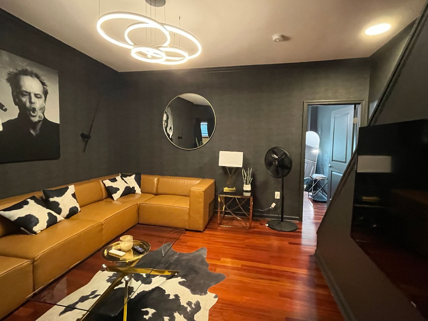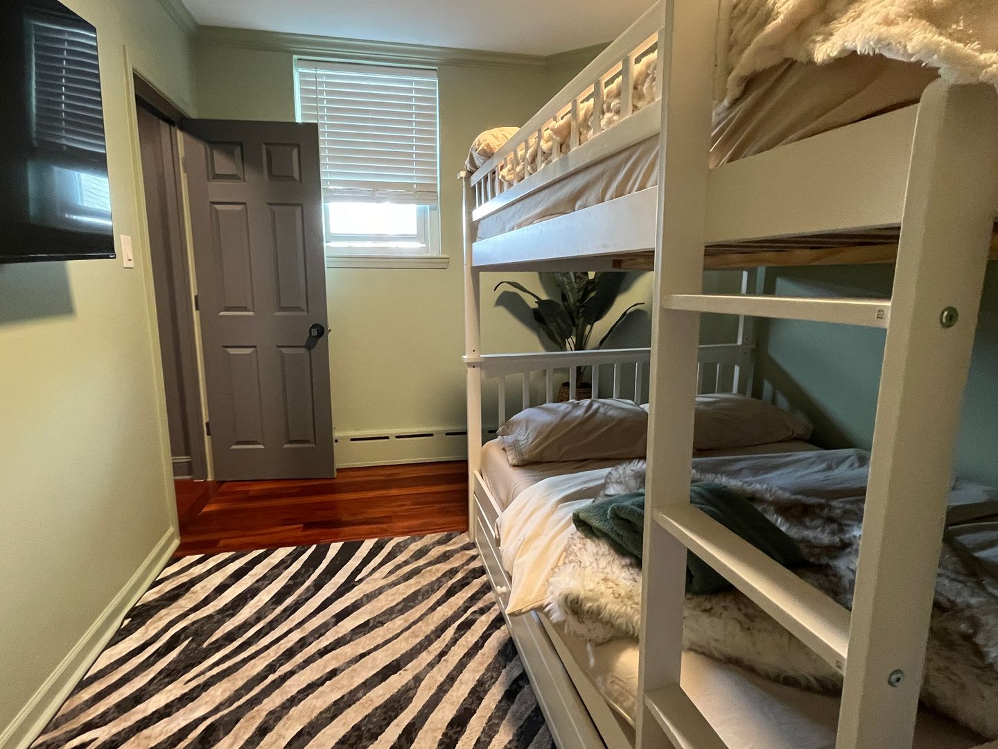 This 3-bedroom, 1 bath gem offers an unbeatable city retreat. With 7 memory foam beds, there's ample room for everyone to Lounge comfortably. Movie enthusiasts will adore the 3rd story movie theater, perfect for cozy nights in. The main living area with its open layout is ideal for relaxation. The Kitchen is very large for your culinary delight, complete with a sprawling Coffee Bar.