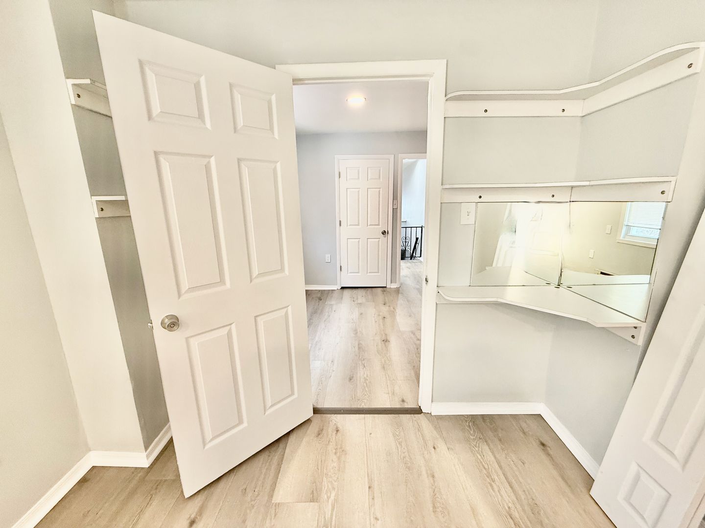 The bath is new as well, with white vanity & tub, well-lit medicine cabinet, built-in wall heater and another window.