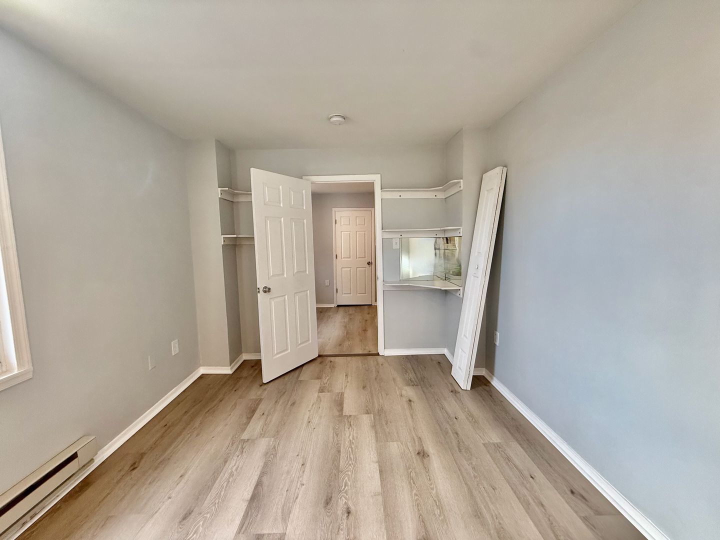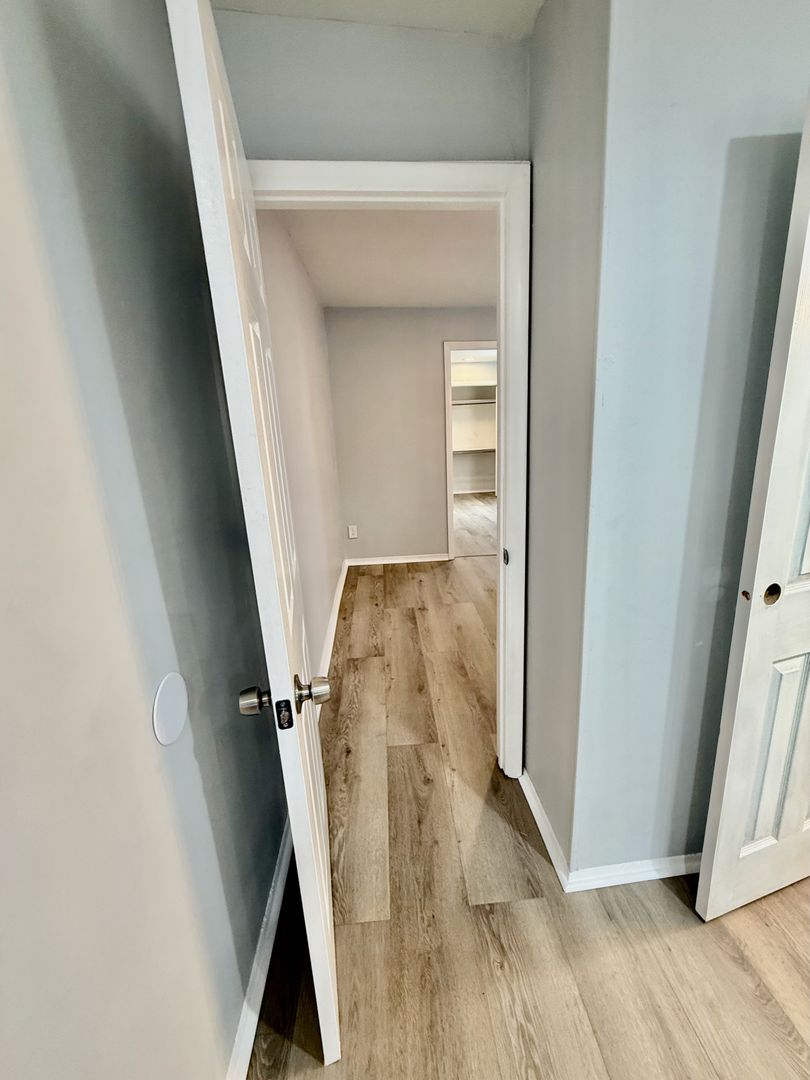 Continue down the hall through a room of your making -office/den/gym with a window and good closet, and then in to the spacious bedroom, also with a window, a full wall of closets and built-in shelving.