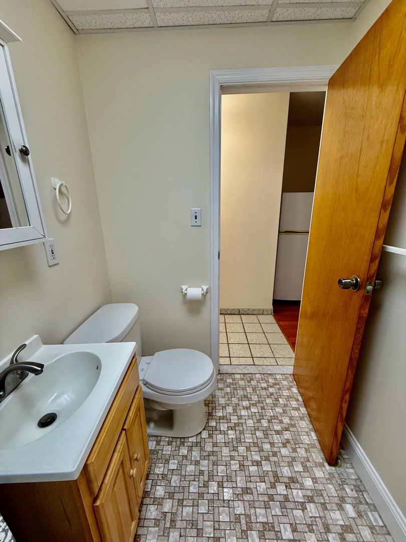 Continue down the hallway to the Bathroom, with tub and modern vanity.