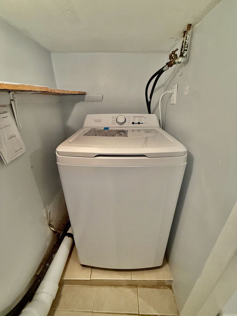The finished basement has ceramic tiled flooring, full-sized washer & dryer, tons of built-in storage and the 2nd full bath, which is technically a bath with Stall-less shower.