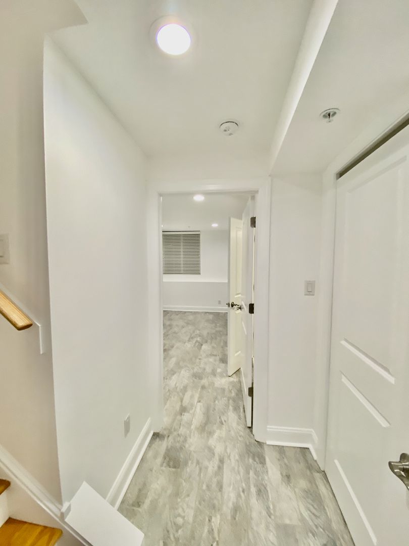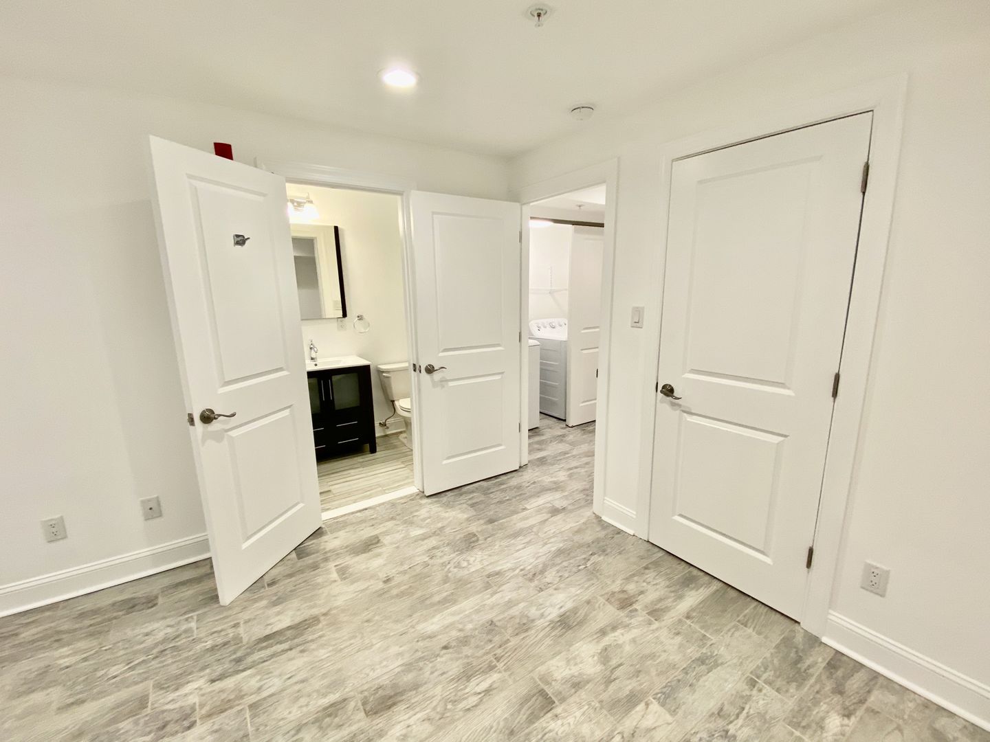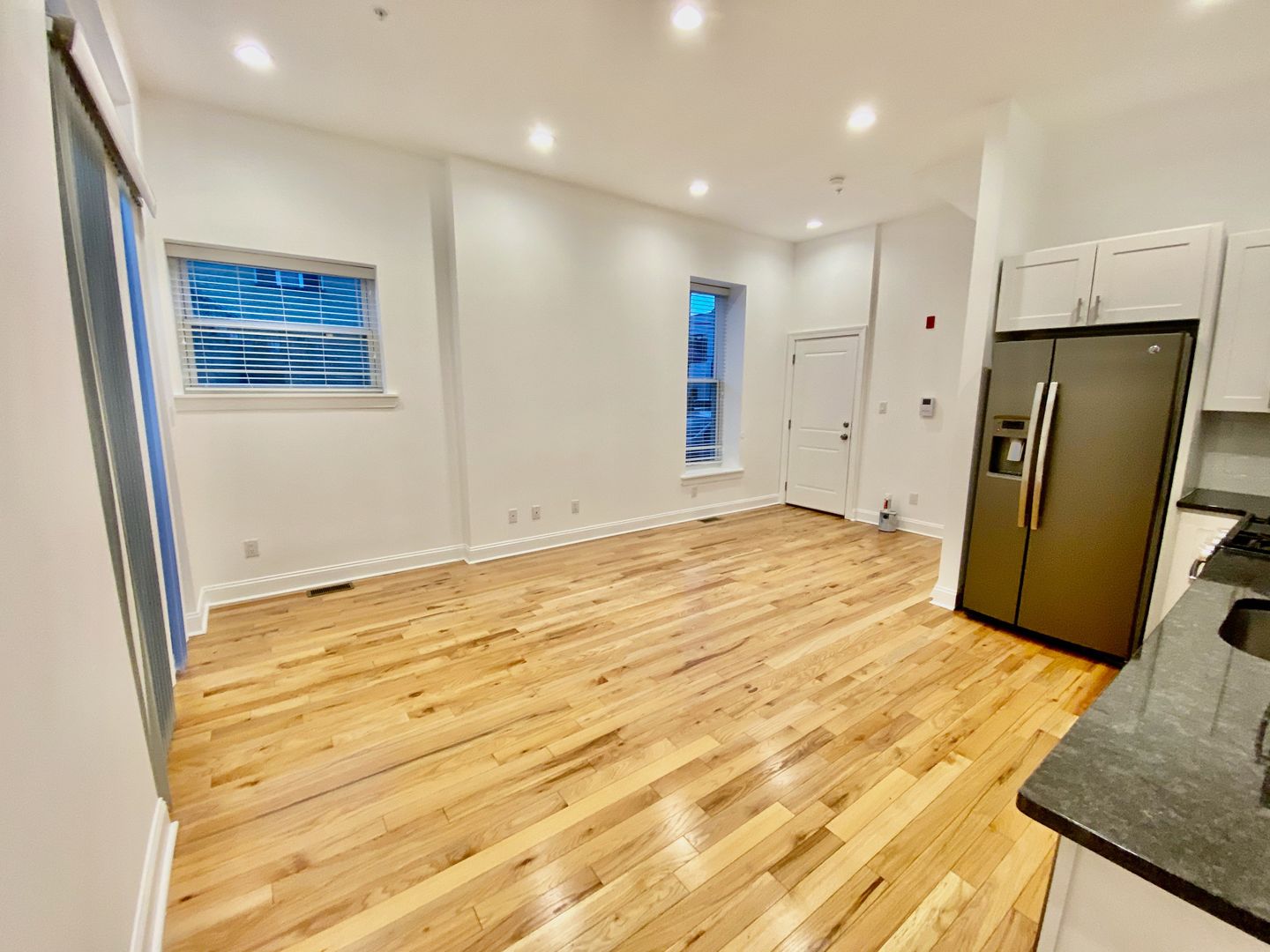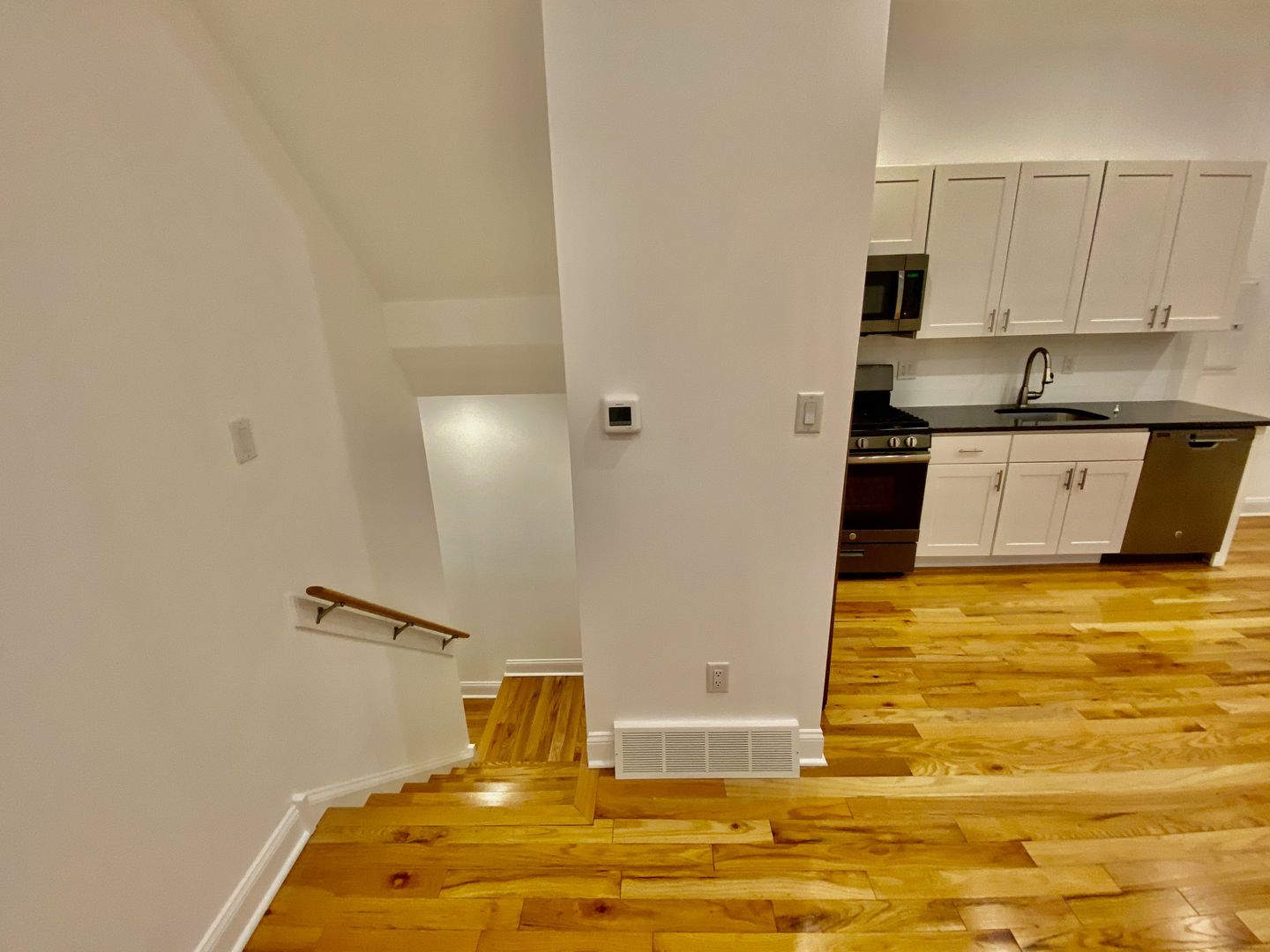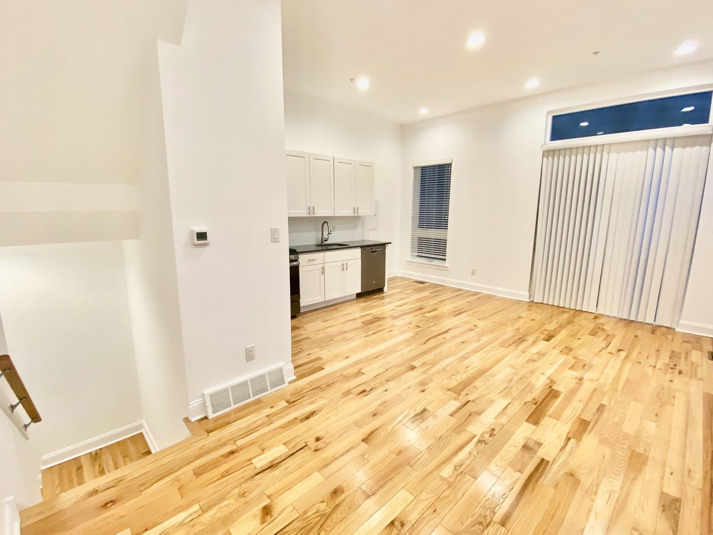 Modern and spacious open floorplan 1 bedroom/1 bath bi-level Apartment featuring central ac, hardwood & engineered wood flooring, recessed lighting, window blinds, fully outfitted closet, full sized washer/dryer, intercom system, hard-wired fire & sprinkler systems & outdoor patio.