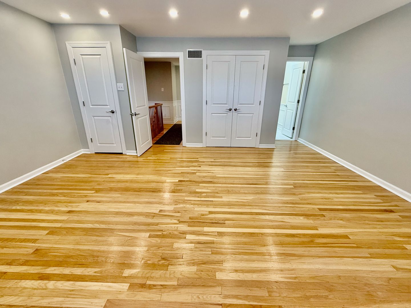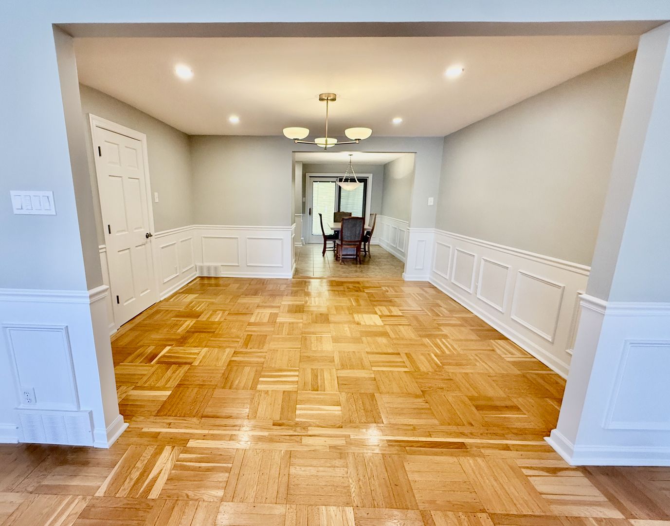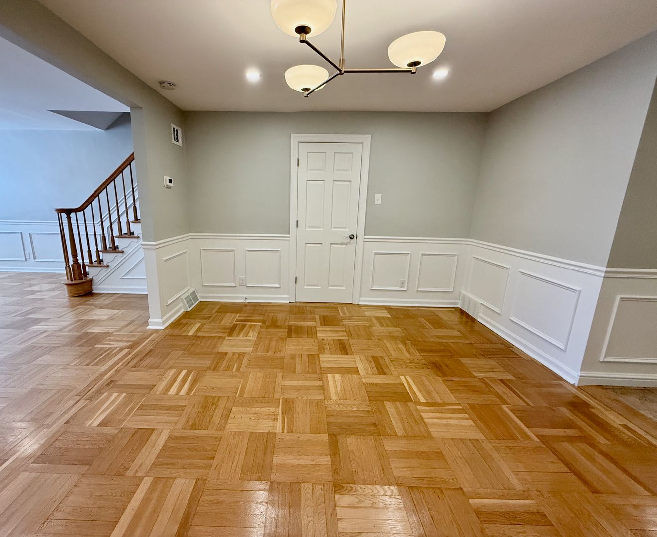 The house opens to a spacious Living Room & separate Dining Room, with Parquet flooring, Panel Molding, high ceilings with recessed lighting, a large sit-in bay window and a spacious layout conducive to a variety of furniture configurations.