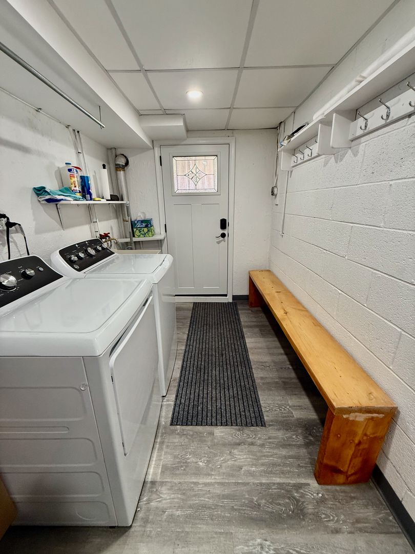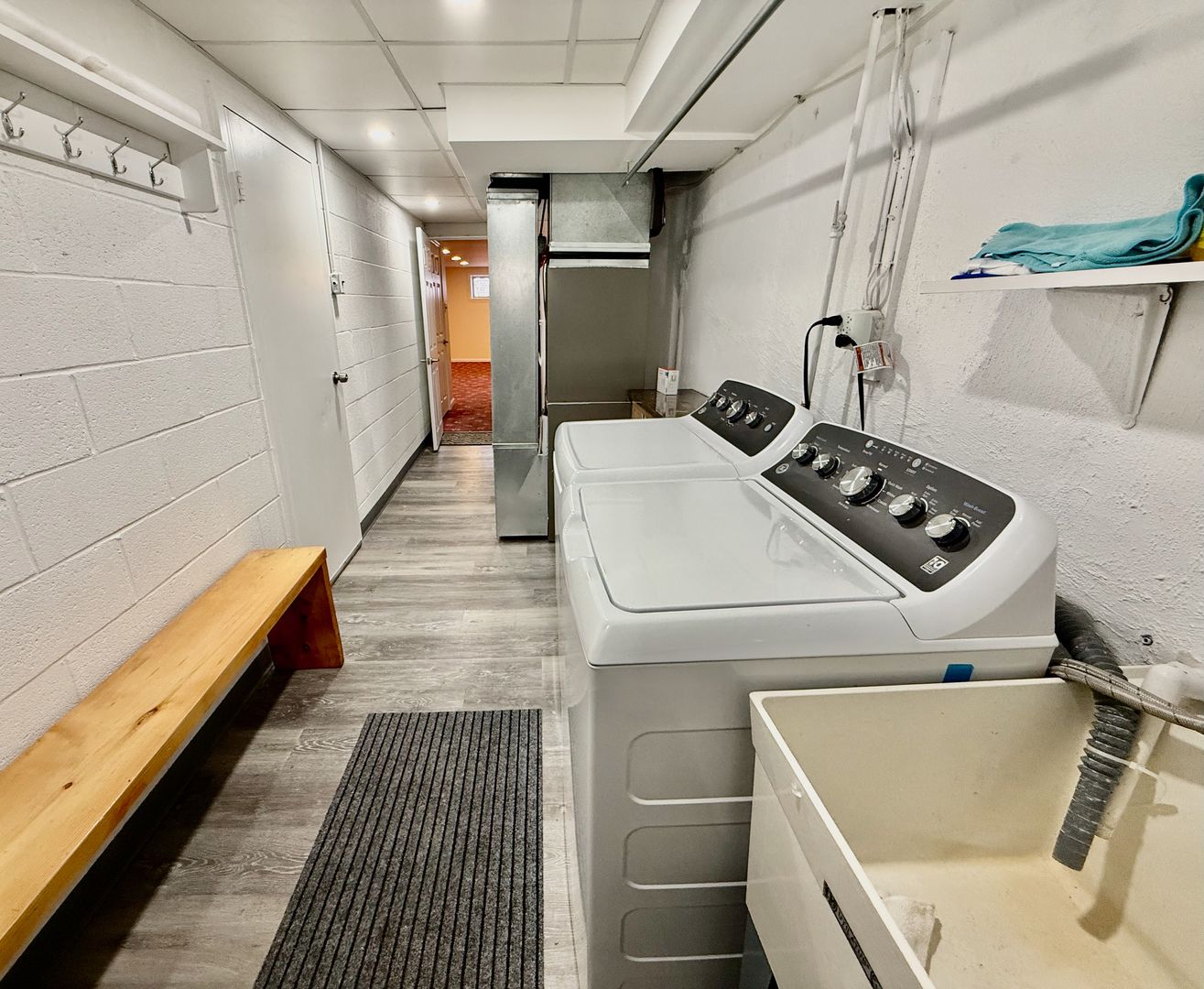 The home is complete with a finished basement featuring recessed lighting, a large walk-in closet, laundry area with full-sized washer/dryer & sink, spare refrigerator, attached garage and rear driveway off-street parking.